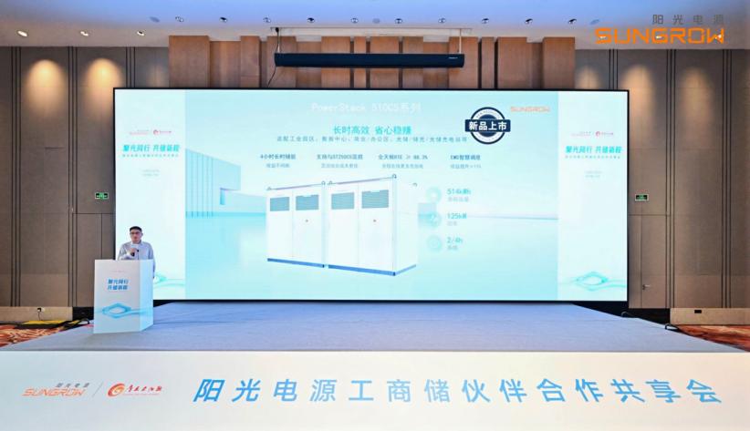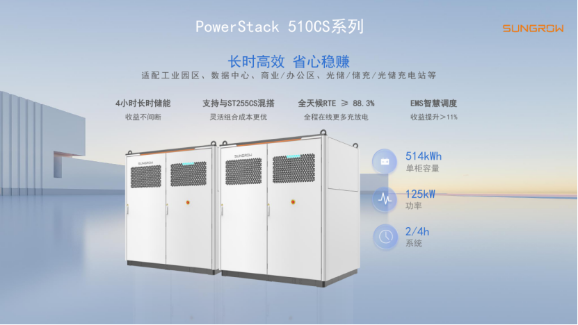 随着 136 号文、分时电价政策等陆续落地,系列政策调整直接重塑了整个储能行业的游戏规则。在此背景下,政策倒逼行业加速升级,唯有技术创新,兑现多场景收益,才能实现逆势而上。10月24日,阳光电源在广东举办 “聚光同行、共储新程” 主题工商储伙伴共享会给出了答案,会上正式发布PowerStack 510CS 系列新品,单柜容量514kWh,延续阳光电源AC存储一体化设计基因,围绕“长时高效,省心稳赚”的产品理念,推出2/4h两个版本。