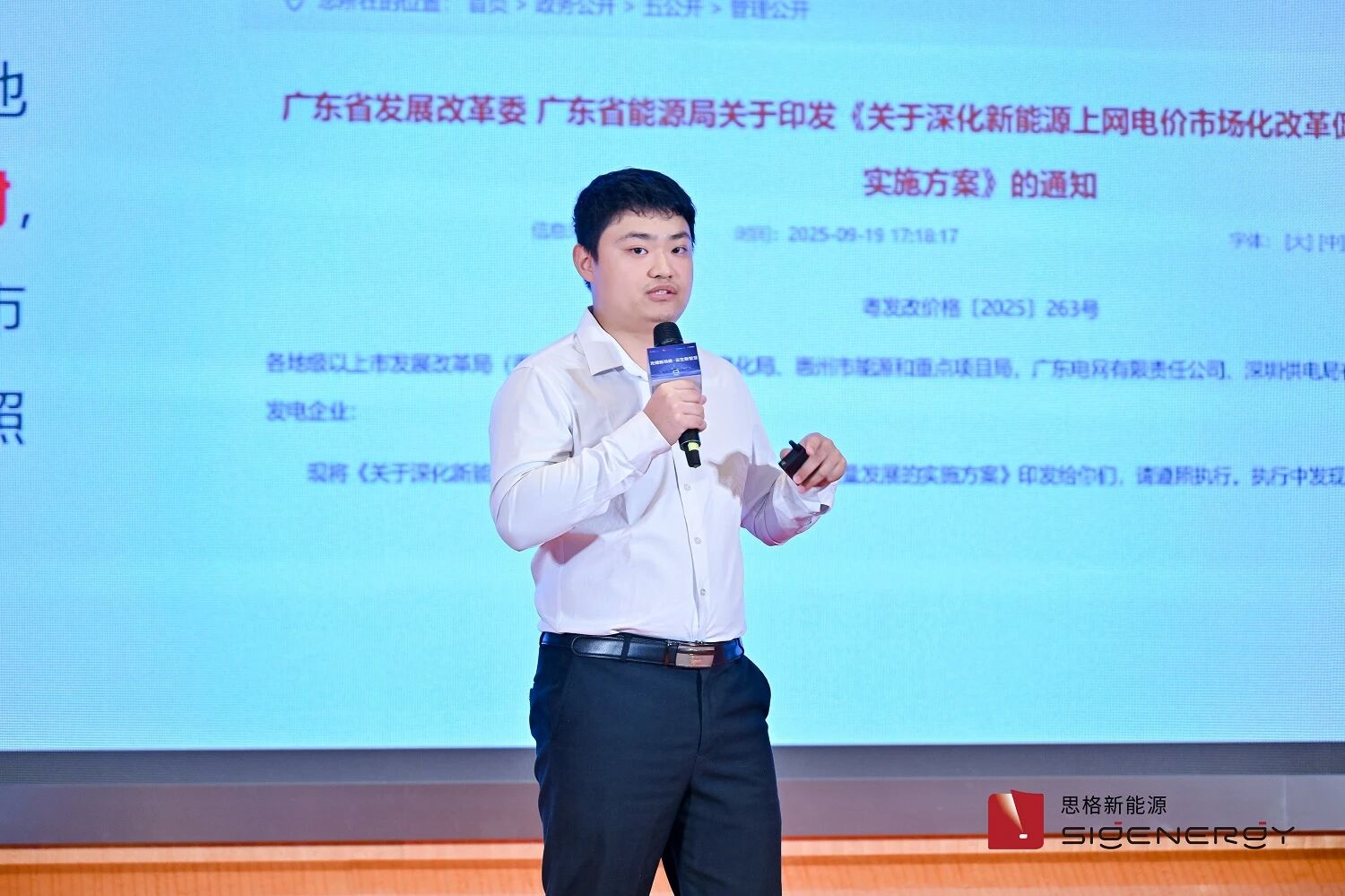 思格新能源华南大区总经理熊国喜作“思格新能源智能光储解决方案”报告