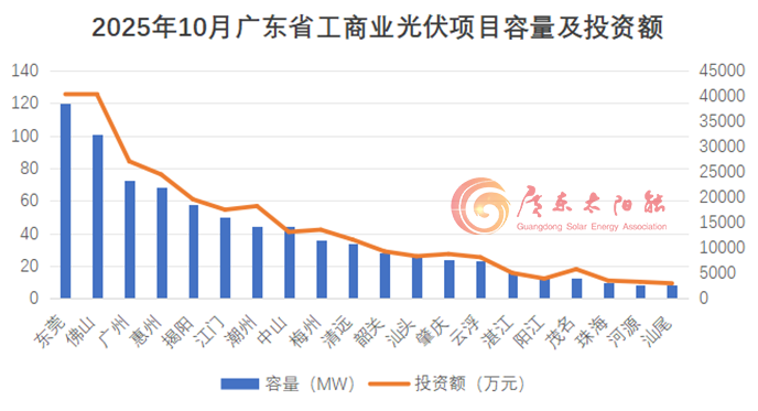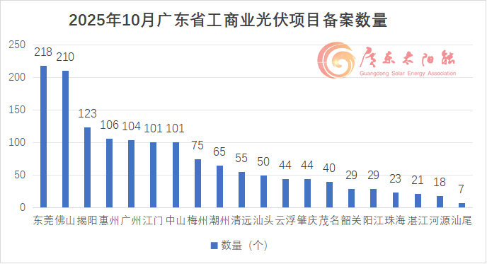 2025年10月,广东省共新增1463个工商业光伏项目,总投资额超28.43亿元。项目主要分布在东莞、佛山、揭阳、惠州、广州、江门、中山这7个地市,备案数量均超过100项。