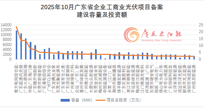 从建设单位的角度来看,2025年10月份广东省工商业光伏备案项目参与企业1074家,包含南方电网等国企;佛山碳睿、昱光新能源、明维创等民营企业。