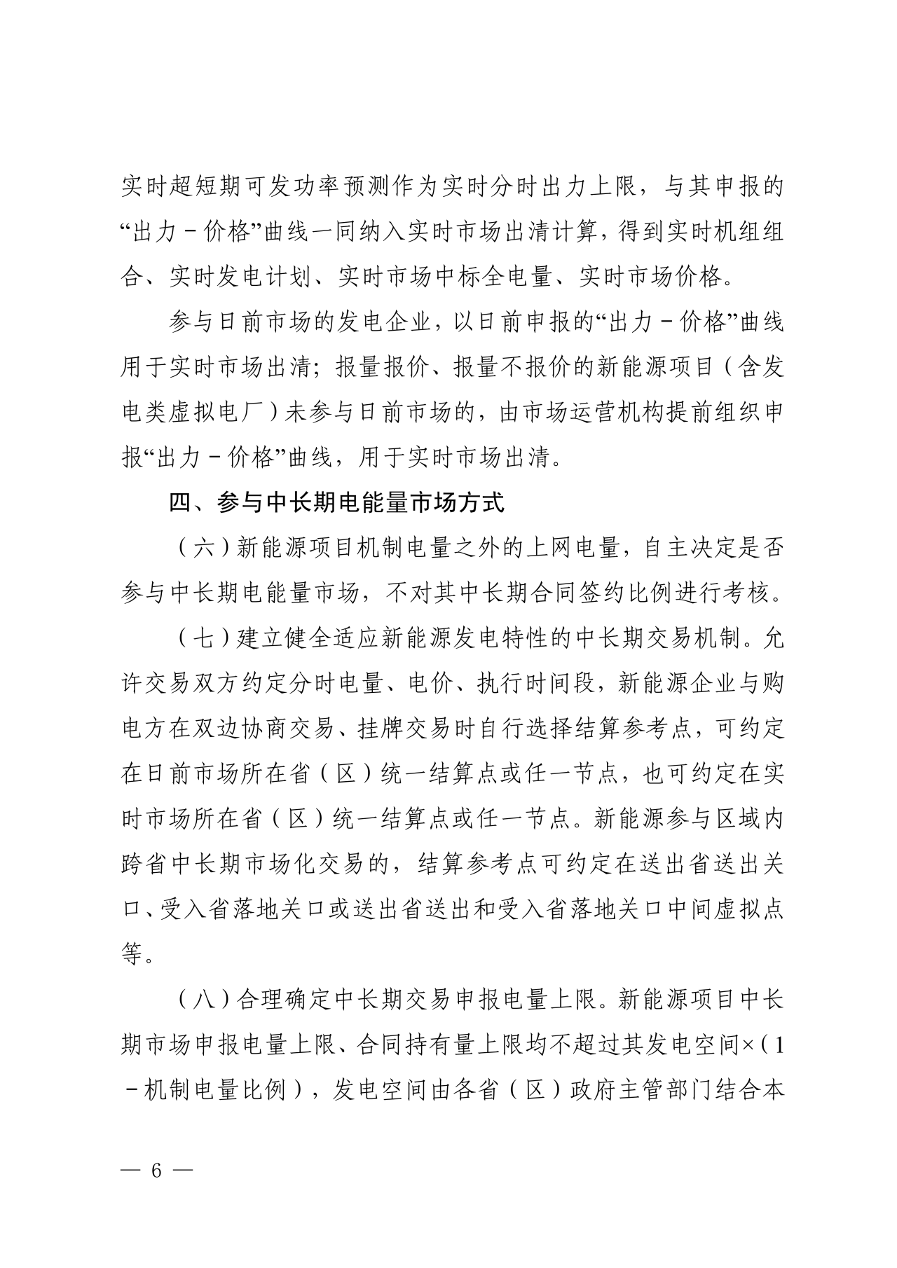 中长期市场中,新能源项目机制电量之外的上网电量,自主决定是否参与中长期电能量市场,不对其中长期合同签约比例进行考核。